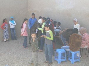 Puis nous avons pu entendre les discours d’usage. Celui de M’Barka. Celui de Fabienne, vice présidente d’Azekka et responsable du projet « malles éducatives ». Et pour finir, celui du Directeur pédagogique de la région de Ouarzazate, Mr Belkas, venu pour l’occasion.
