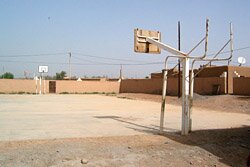 Le terrain de basket/volley. Il manque les ballons et maillots ! |