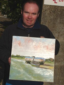 J'ai un ami qui fait de la peinture sur toile je lui ai demandé si par hasard il serait partant pour m'offrir une de ces oeuvres représentant notre région que j'aimerai offrir a mon tour à Monsieur Mabrouqi et la maison des jeunes en signe d'amitié pour son implication dans notre projet et en guise de souvenir. Ce cher Loïc à tout de suite répondu favorablement à ma demande ce qui me fait très plaisir.