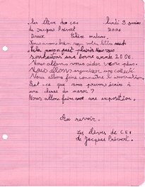 Dans la foulée, les élèves du CE1 de l'école Prévert (Dreux) ont décidé d'organiser eux-mêmes une nouvelle collecte et ont apporté livres, cartables, classeurs etc... Voir la lettre des enfants ci-contre !