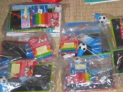 Tout est prêt, le nom de l'élève sur chaque kit, on attend les enfants