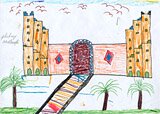 Ils dessinent leurs maisons (ici Achmy à gauche et Meryem à droite) |